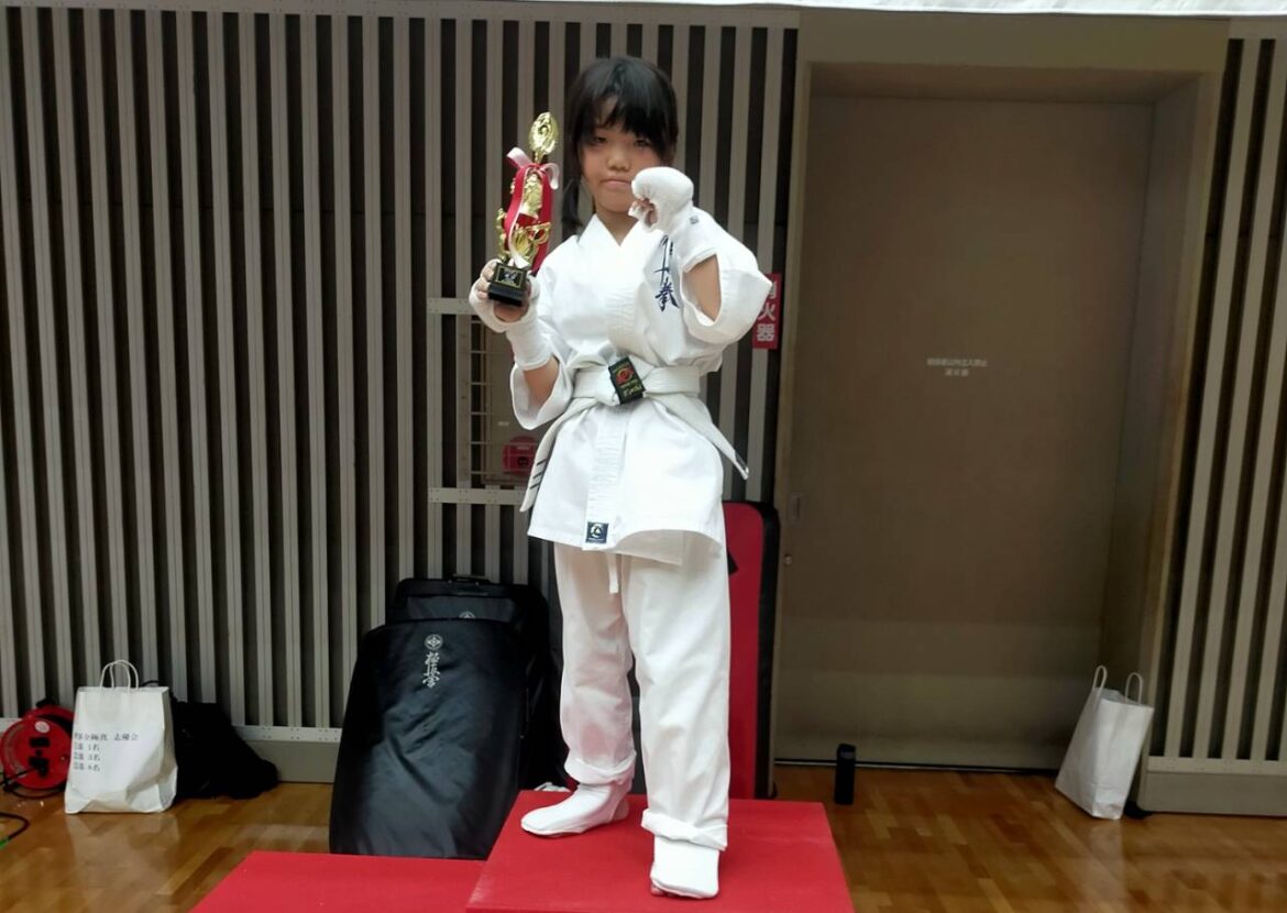 小学1・2年女子クラスに出場した東瀬野さん、初戦から攻勢ペースを崩さずに3戦を戦い、見事に優勝!