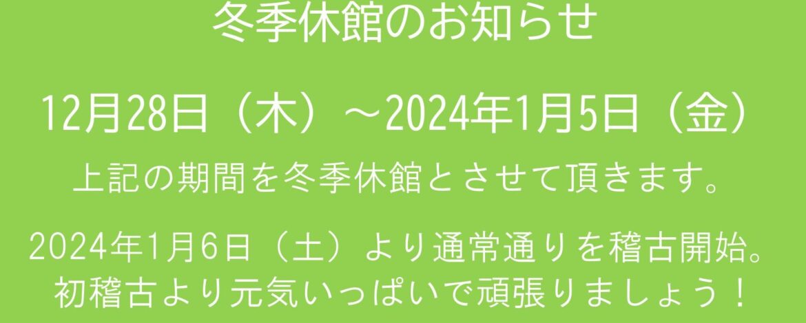 12月28日(木)~2024年1月5日(金)までの期間、冬季休館とさせて頂きます。