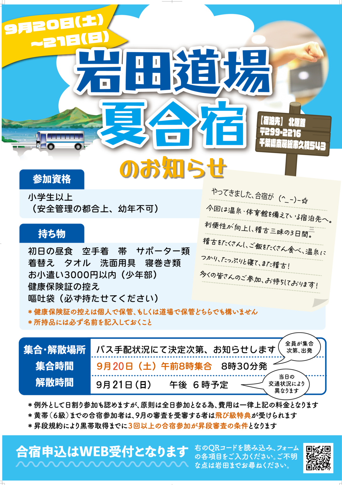 稽古して、風呂につかり、食べて、寝て! 幸せな2日間を共に過ごしましょう(^_-)-☆