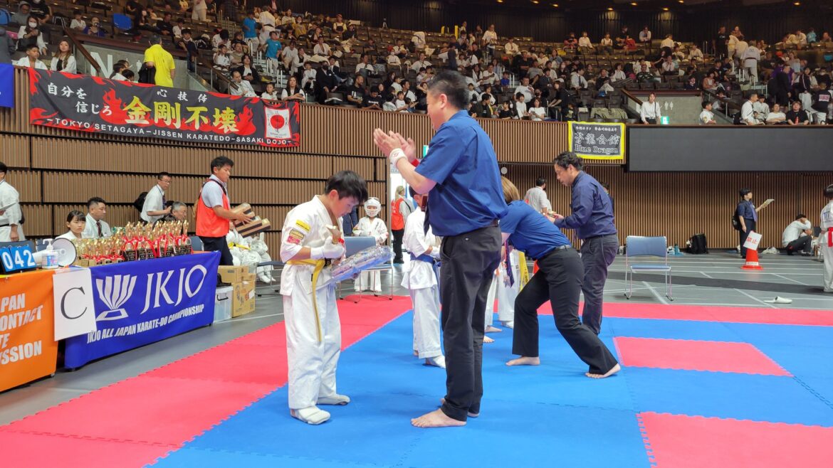 ほう/れん/そう 第12回全日本総合空手道選手権大会+全極真 神奈川県大会にて 20240609 by photouser 2024年6月26日 written by photouser 2024年6月26日 第12回全日本総合空手道選手権大会(JKJO全日本選抜)が国立代々木競技場第2体育館にて開催されました。 反田 泰臣さん(戸田道場)が小2上級選抜クラスで優勝 大会を主催頂きました中山道場関係者の皆様、JKJO関係者の皆様、ありがとうございました、押忍! 全極真 神奈川県大会には 遠山 琥太郎さん(戸田道場)と杉野 史織さん(武蔵浦和道場)が出場。ともに決勝戦へ駒を進めるも惜敗(◎_◎;) また頑張りましょう! アルファジムインストラクター募集キックボクシング戸田道場朝霞道場極真空手武蔵浦和道場 0 comment previous post 神奈川県交流大会にて 20240602 next post MUGEN道02大会にて 20240615 関連記事はこちら ドリームフェスティバル選抜 群馬県大会にて 20251013 2025年10月13日 忍杯 全関東大会にて 20250928 2025年10月3日 JKJO王者決定戦2025にて 20250921 2025年9月24日 9月15日(月)、GENKI CHALLENGEにて 20250914 2025年9月24日 拳チャレ大会 結果 20250907 2025年10月3日 リアル選抜大会にて 20250831 2025年10月3日 JKJO東京大会にて 20250823 2025年8月24日 拳チャレ大会 詳報を 20250821 2025年8月21日 全極真 東日本大会にて 20250811 2025年8月14日 第1回東京都空手道選手権大会(武将杯全日本&チャンピオンカップ選抜)にて 20250810 2025年8月14日 Leave a Comment Cancel Replyコメントを投稿するにはログインしてください。